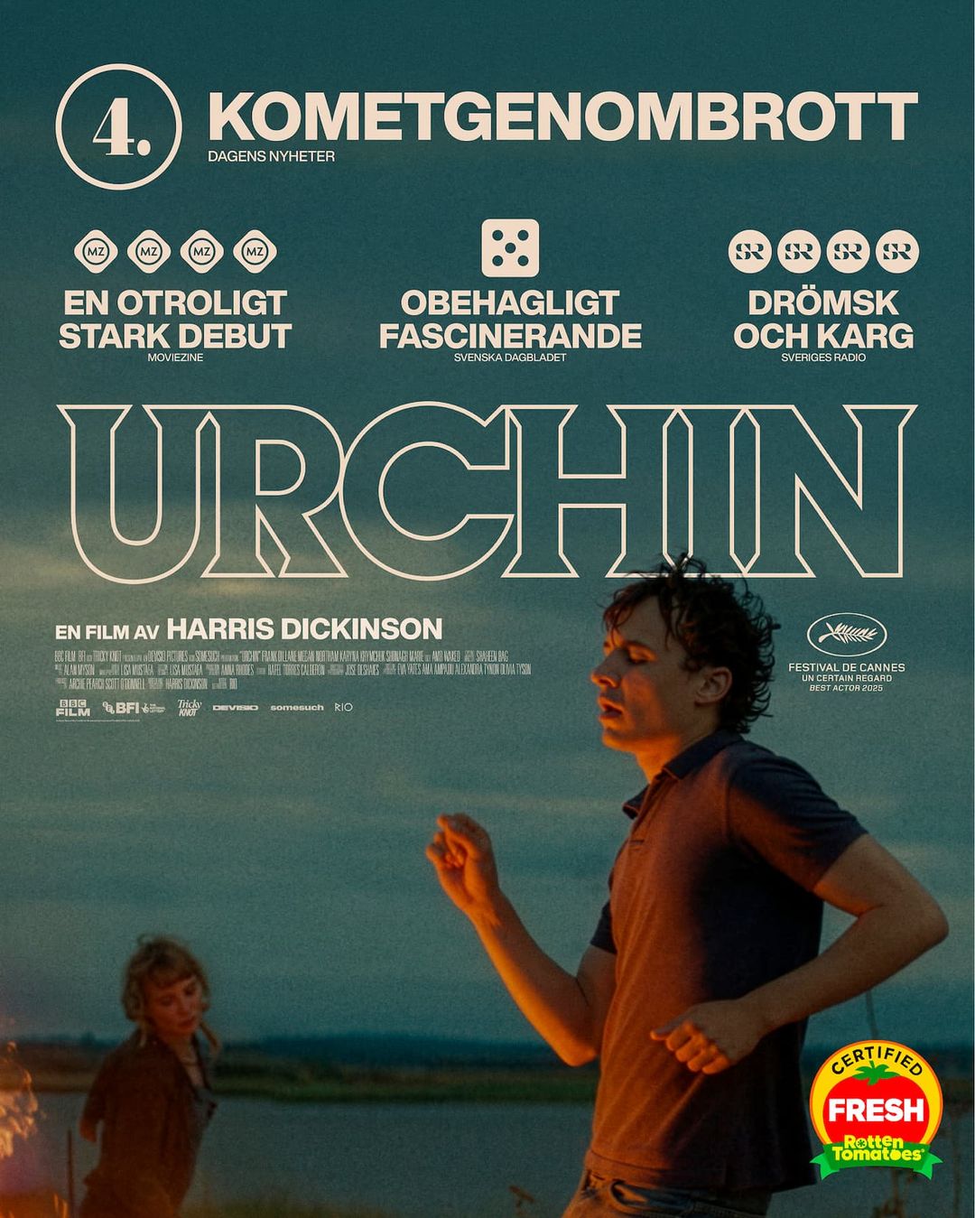 Harris Dickinsons vilt humoristiska trip till regidebut följer Mike (Frank Dillane) som hankar sig fram genom småbrott tills en drabbning med hans nemesis Nathan (Harris Dickinson) får allt att spinna ur kontroll. Urchin har hyllats unisont och tog hem två tunga festivalpriser från filmfestivalen i Cannes (Kritikernas pris Fipresci och bästa skådespelare Un Certain Regard).