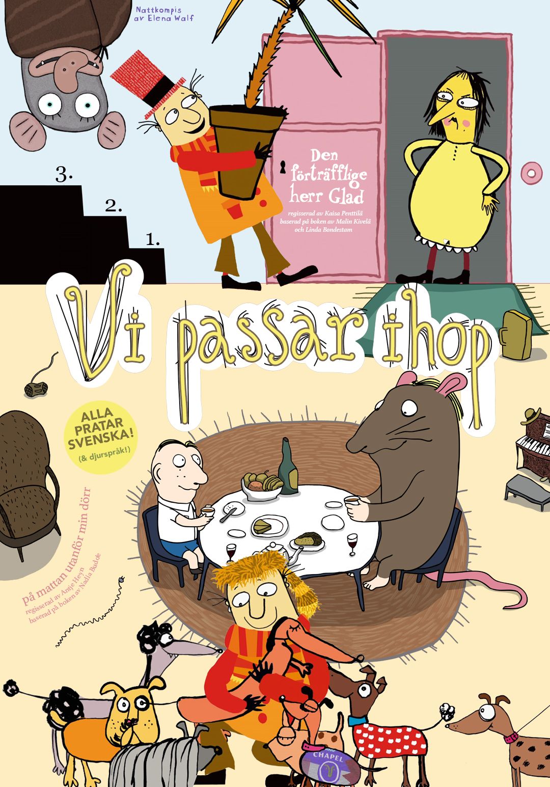 Vem ska en nattvaken fladdermus leka med när alla andra sover? Vad händer när en stor råtta plötsligt tar över ens hem? Hur går det när den förträfflige herr Glad får en ny granne – som alltid är sur som en citron? Följ med på en sagostund på bio och få reda på svaren!
